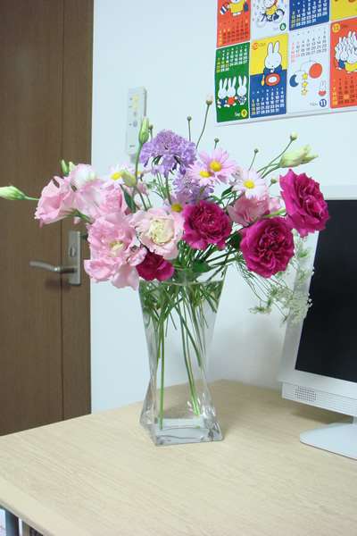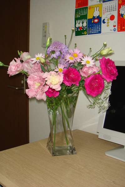 ストロボが照射され、背景に不自然な影ができ、花の色も何か変です。