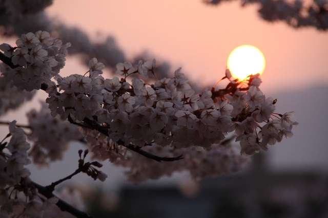 朝日が朝日らしく写り、桜は暗く写っています。(もっと暗くても良かったかも)