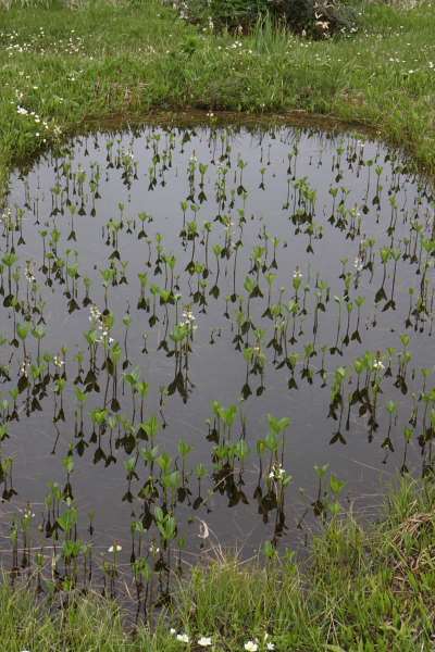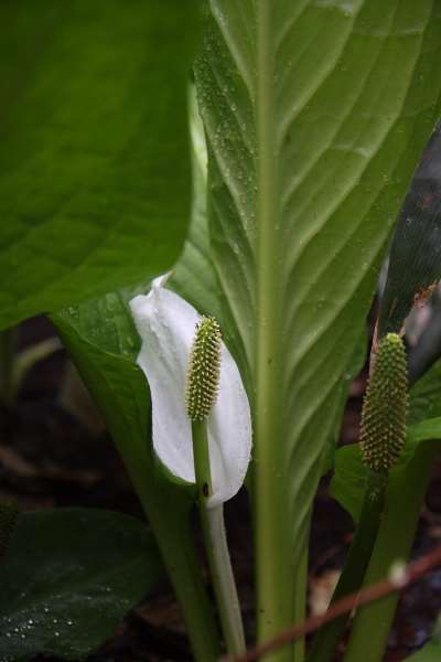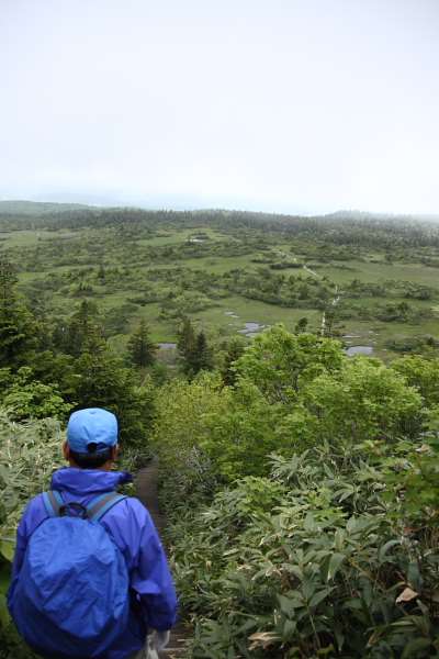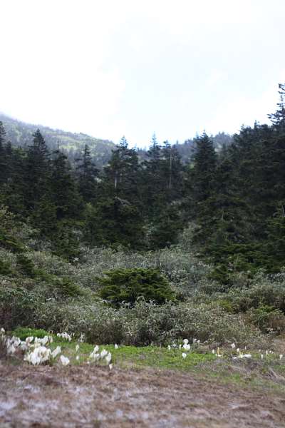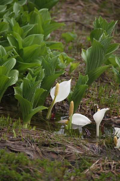 下山道、湿地帯の毛無岱(けなしたい)には水芭蕉がたくさん咲いています。