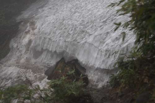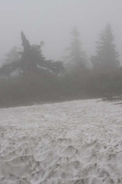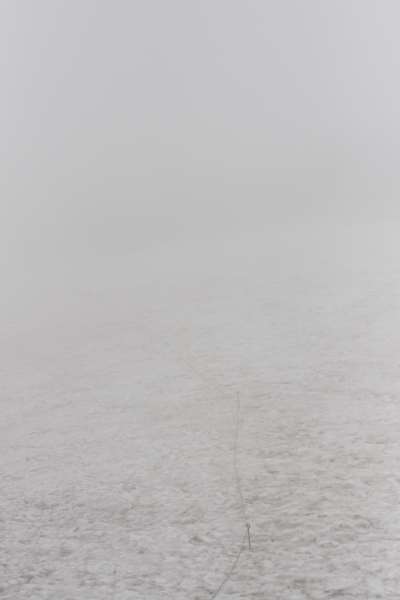 やっぱり雪でいっぱい。霧で先が見えず、どこまで登ればいいのかわからず、吹き付ける冷たい風と相まって、恐怖を感じました。