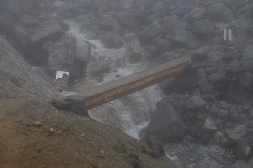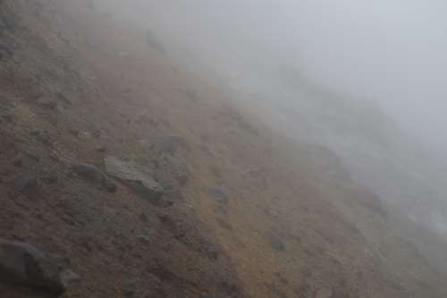 視界が悪く、瓦礫に覆い尽くされ、ガスも吹き出るている急斜面。