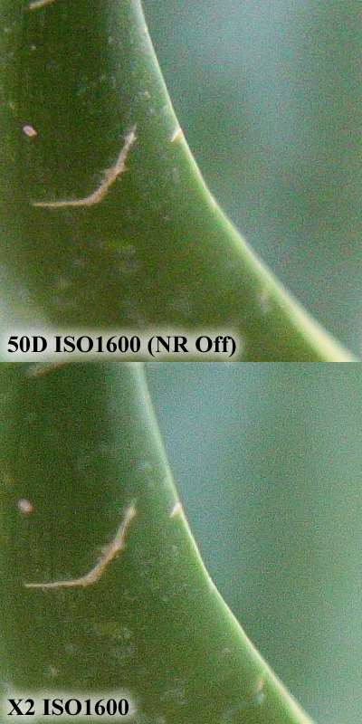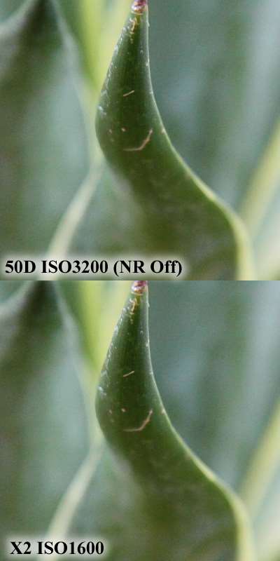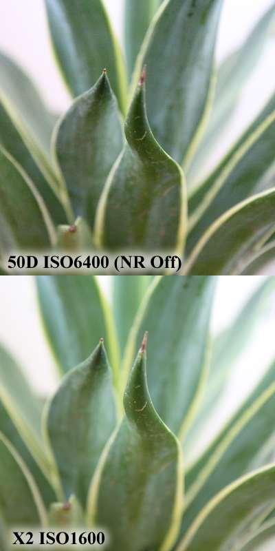 サンプルは掲載しませんが、50DとX2での高感度ノイズ比較を行ってみました。