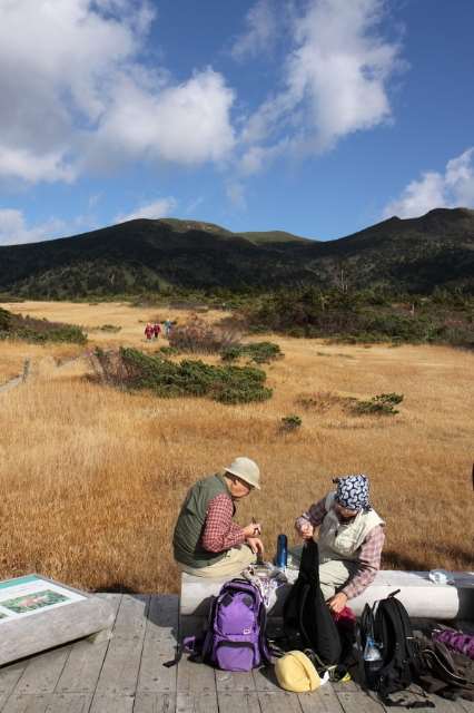 木道途中の休憩所にて。そっかここで昼食でもいいんだな。