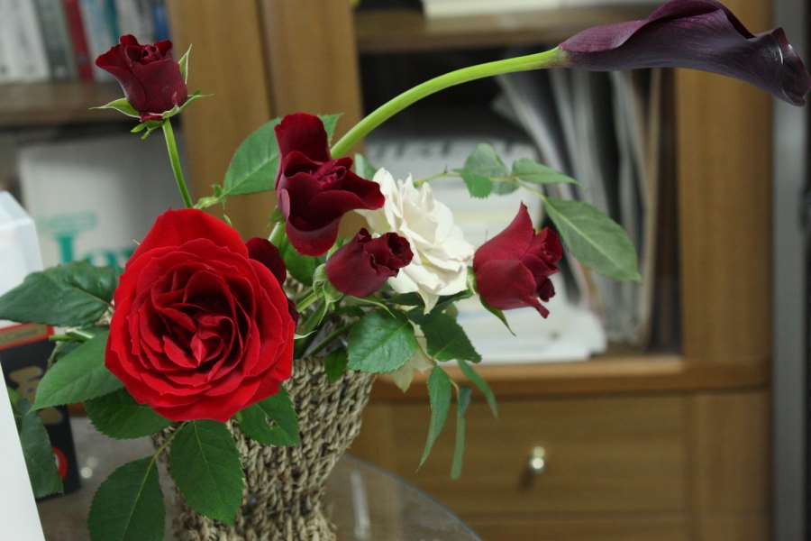 X2とキットレンズEF-S18-55F3.5-5.6ISで赤薔薇。1/15秒で手ブレセーフ でした。