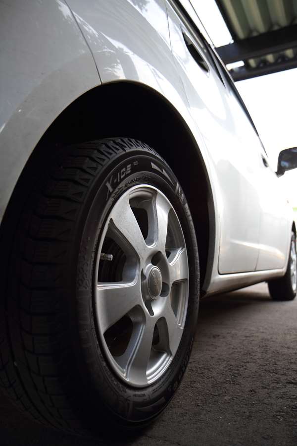 まずはチラシ用のタイヤ画像。FITにへばりつくようにパチパチと。
