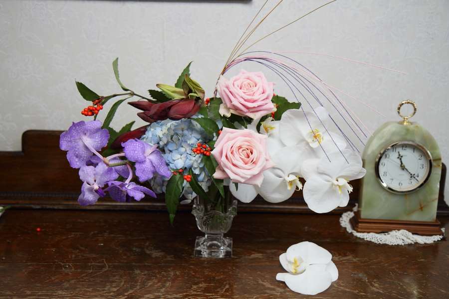 蘭は何度も活けたことがありますが、真っ白い胡蝶蘭を活けたのはお初でした。