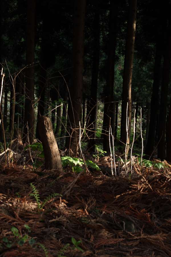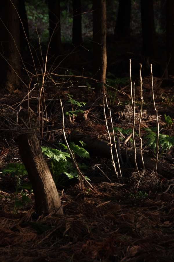 まっすぐ連なっている白っぽい枯れ木が横に並んでいた様子を横位置で撮りたかったのですが間に合わず。