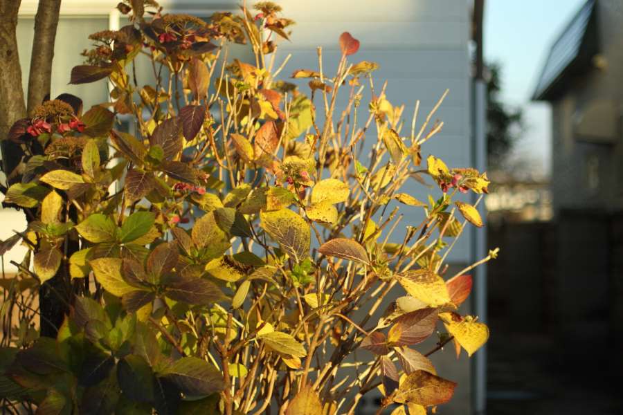 住宅街。枯れかけのあじさい。